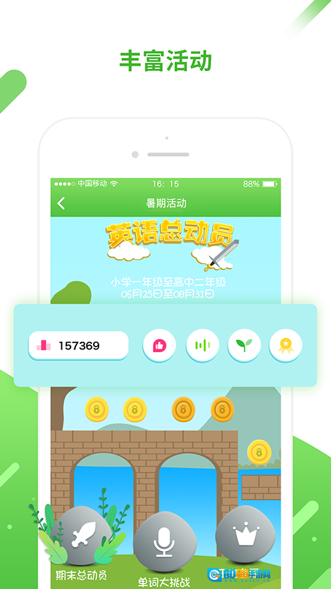 4、挑战练习:借助游戏化的任务形式来驱动学习进程,充分调动孩子的学习热情,让口语练习变得更具自主性与持续性。