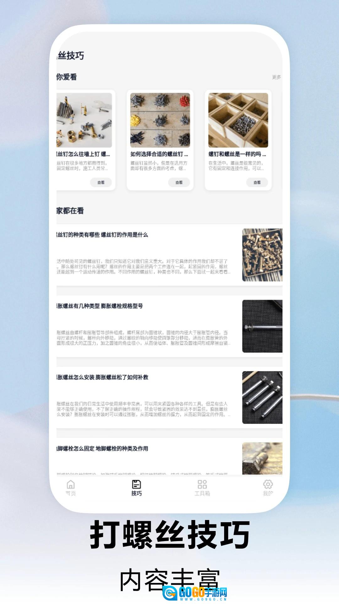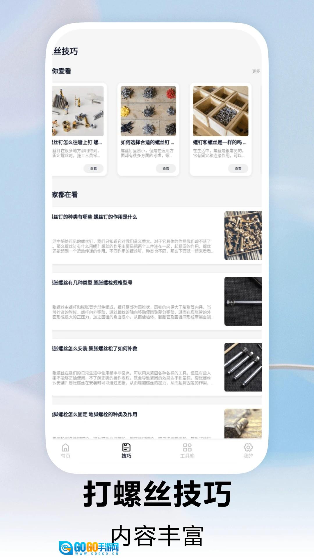 2、之后在技巧页面中,用户还能了解各类螺丝的使用技巧。