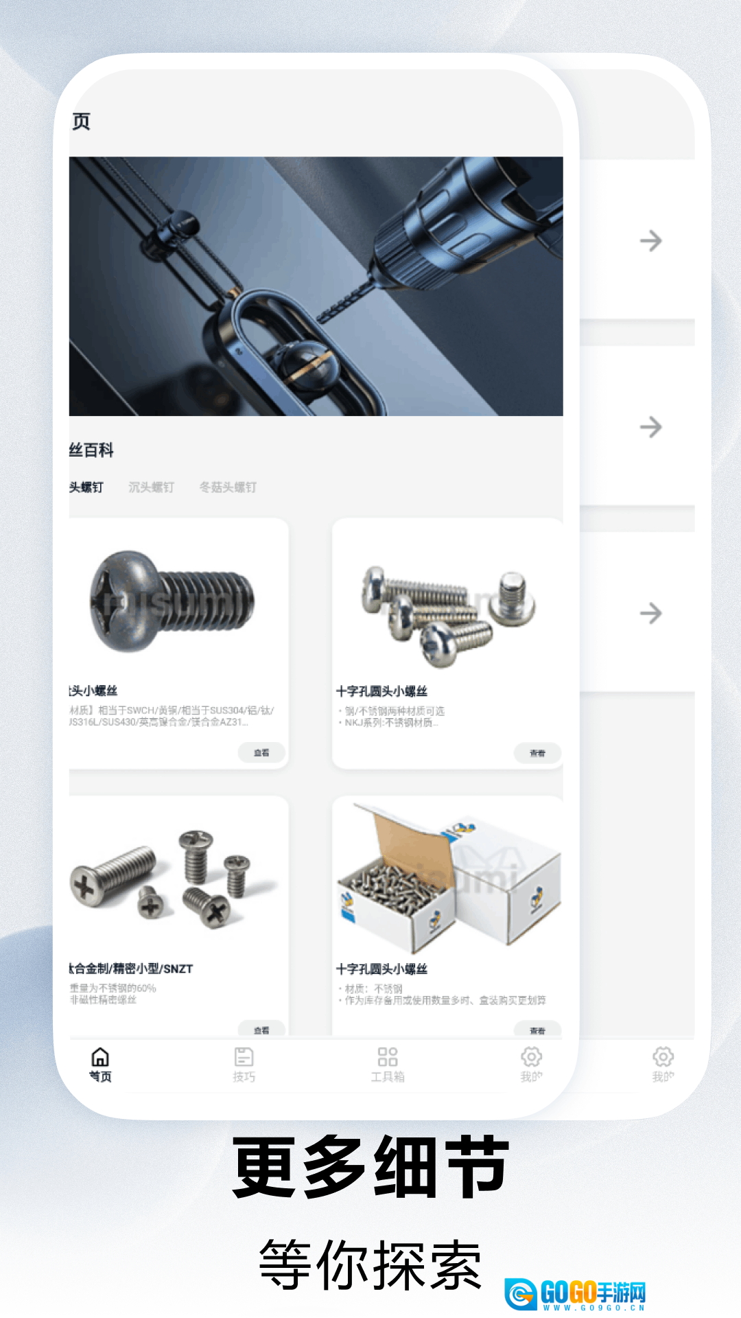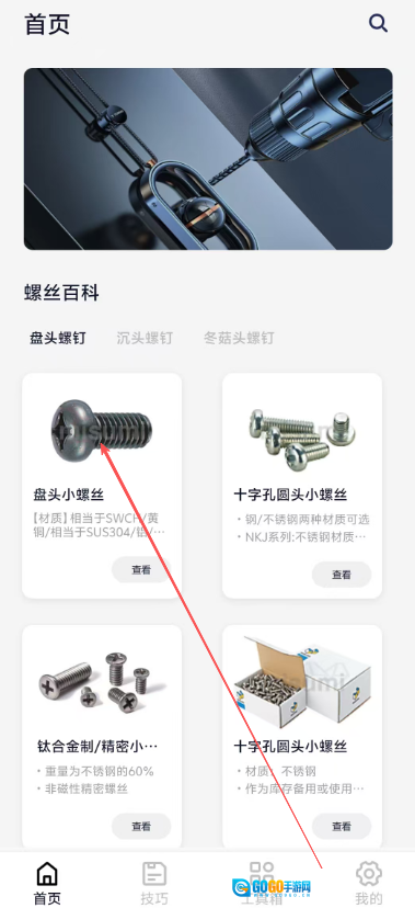 1用户进入软件后,可直接在首页查看各类螺丝的百科知识。