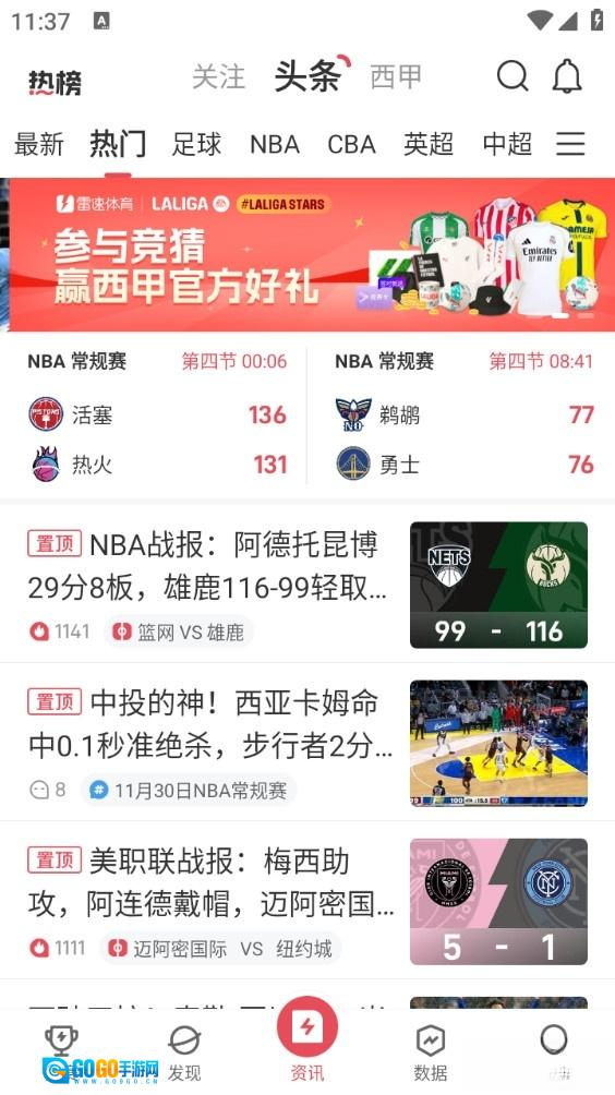 雷速体育是一款涵盖多维度赛事内容的体育应用,能为用户提供实时快速连接最新比赛现场的功能。不管用户关注足球、篮球还是电竞等赛事,雷速体育都能满足需求,带来精准的赛况信息。用户可以通过它获取各类资讯,包括各大赛事的更新情报,同时还能查看NBA、LOL等比赛的即时比分和详细信息。无论是想了解足坛动态,还是追踪西甲、英超等主流联赛,雷速体育都能提供全方位的覆盖。
