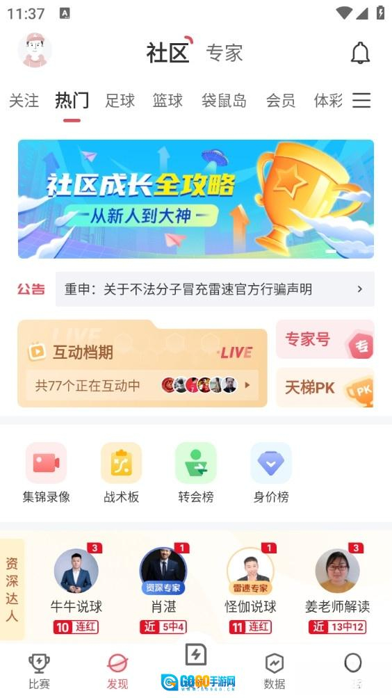 人气超高的球迷交流讨论区,即时互动聊天传达比赛信息,畅谈比赛讨论,所有球迷一起热血享受比赛;