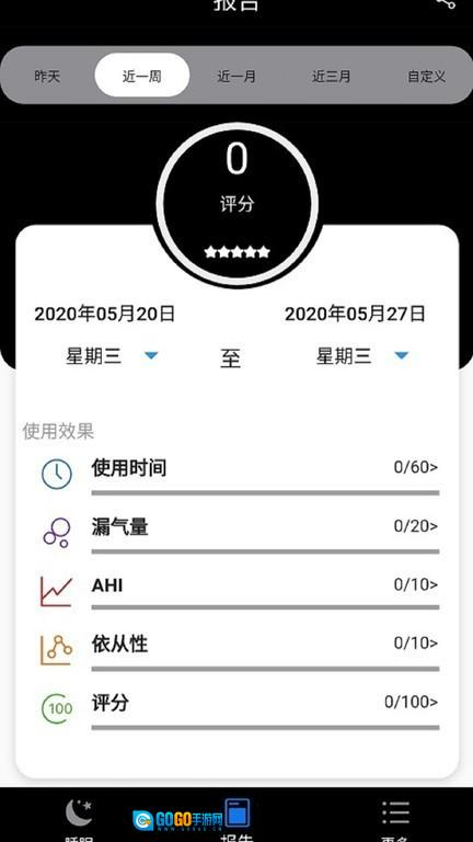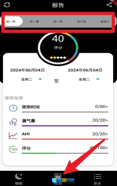 2、点击报告页面能够查看评分以及各项睡眠数据,并且支持按照时间段进行筛选查看。