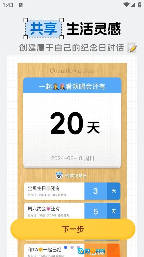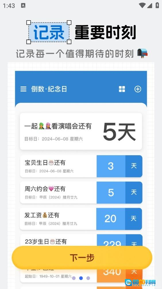 这款软件堪称用户日常生活中的得力助手,既能记录重要事件,又支持自由添加与编辑功能。有了它,用户再也不必担心错过重大事件或纪念日,十分值得推荐!