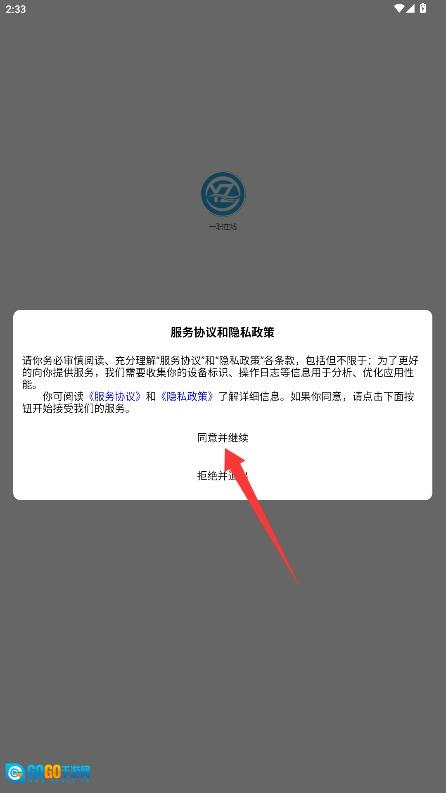 1首次使用时,请仔细阅读平台的服务条款和隐私政策,确认无误后,点击“同意并继续”按钮即可进入应用。