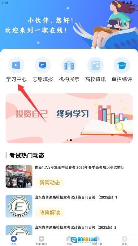 4、进入主页面后,点击“学习中心”模块,就能开始浏览和学习相关的专业知识与技能课程了。
