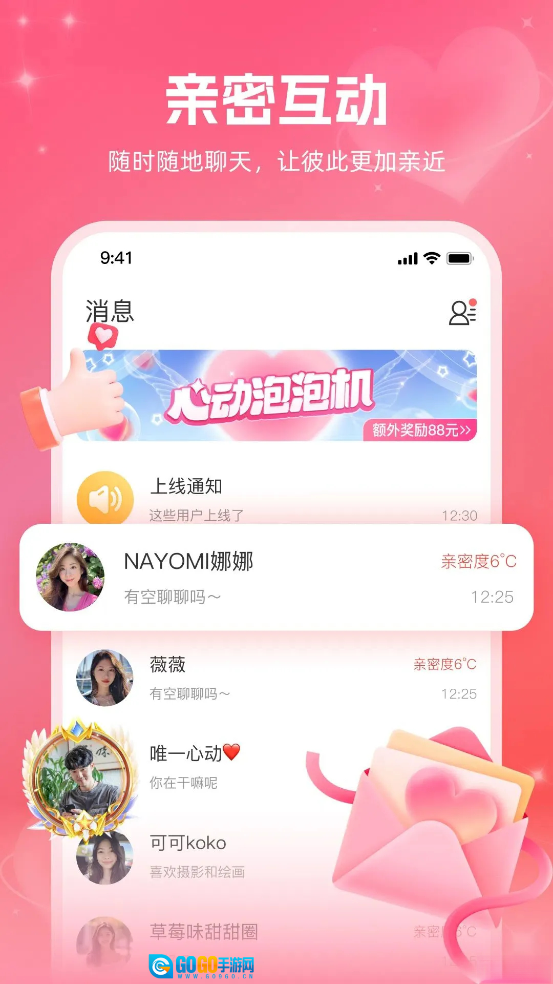 2、亲密互动随时随地聊天,让彼此更加亲近;