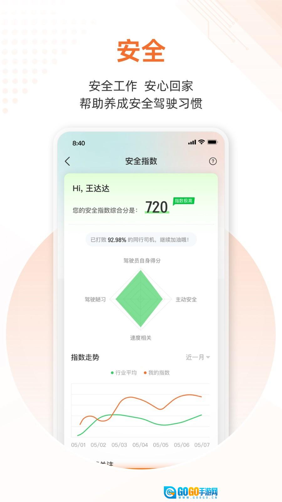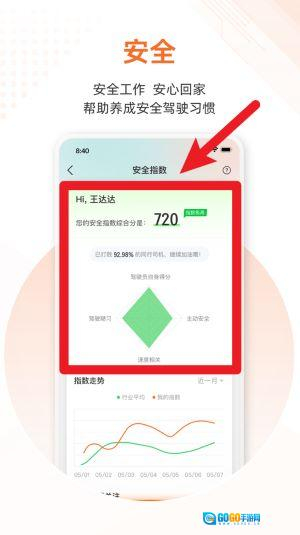 4、安全指数功能能够实时对驾驶行为进行评分,借助图表分析助力司机培养良好的安全驾驶习惯。