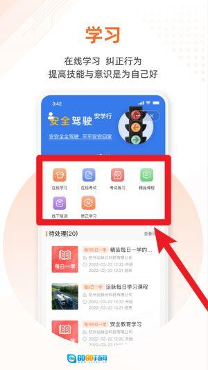 3进入学习模块后,可利用在线学习、考试练习以及精品课程等功能,全方位提升驾驶专业素养。