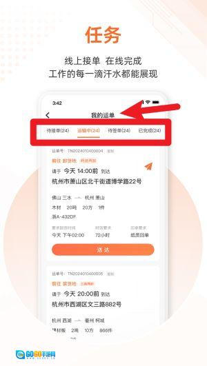 2在我的运单页面里,能够查看待接单、运输中、待签单以及已完成等各阶段任务的详细信息。