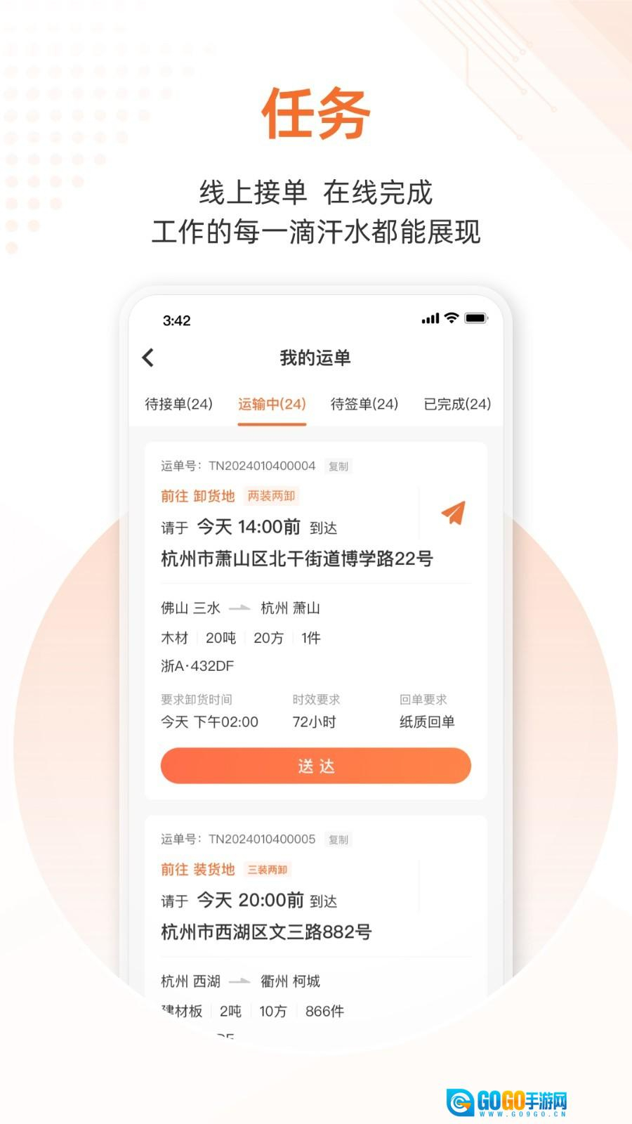 2、订单管理:具备在线接单与任务管理功能,可集中查看并处理所有运输任务。