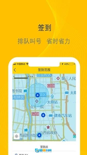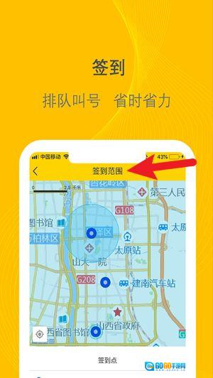 2、签到功能借助定位来判断司机是否处于签到范围内,司机能够在地图的蓝圈区域内快速完成签到。