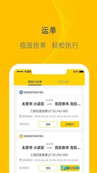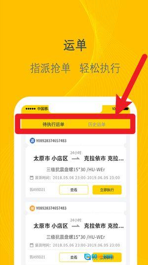 3、运单页面设有待执行与历史记录两个板块,点击对应的标签就能查看当前任务或过往运单的详细信息。