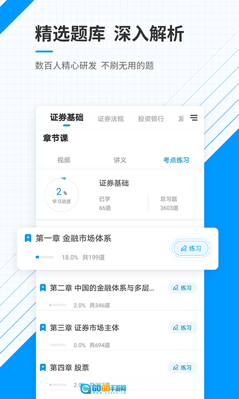 2、领先的通过率:累计服务过100多万金融考生,用户的平均通过率明显高于行业平均水平。