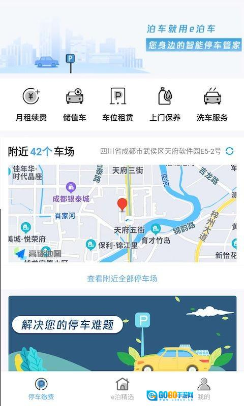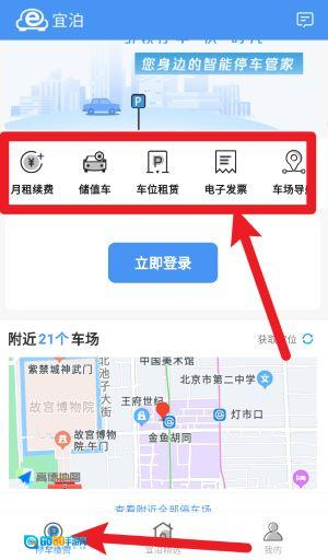 2、登录后,可从首页上方快速进入月租续费、储值车、车位租赁、电子发票等核心功能模块。