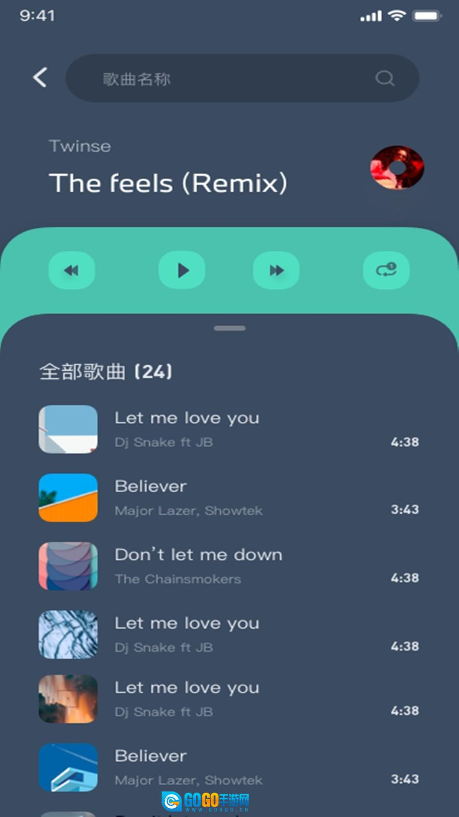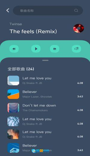 3、进入音乐播放界面后,能够借助播放控制按钮切换歌曲、暂停播放,还可以查看当前播放列表里的所有音轨内容。