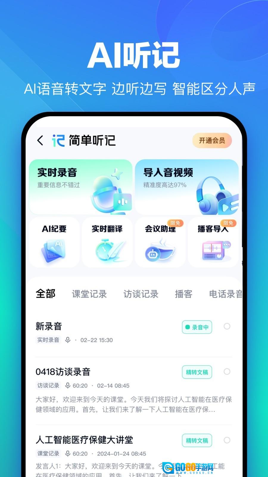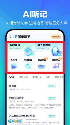 4、听记页面具备AI实时录音、音频导入转写、会议纪要整理等功能,助力用户高效完成信息记录。