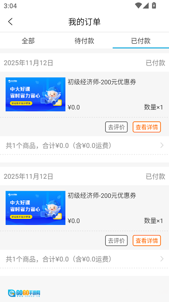 6、最后进入“我的订单”界面,点击“已付款”栏目后,就能查看所有的订单记录了。
