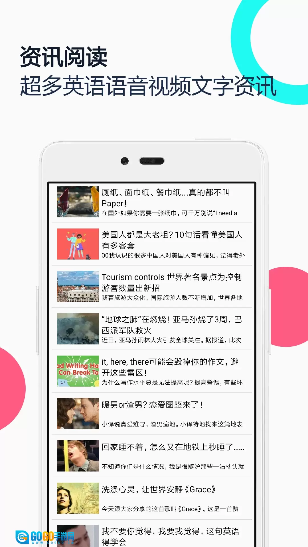 4、资讯阅读:每日更新精选双语文章,丰富栏目助你轻松积累知识。