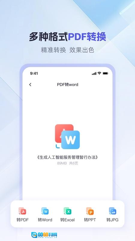 格式一键互转:PDF、Word、Excel、PPT及图片文档自由转换,无需复杂操作,兼容性极强。