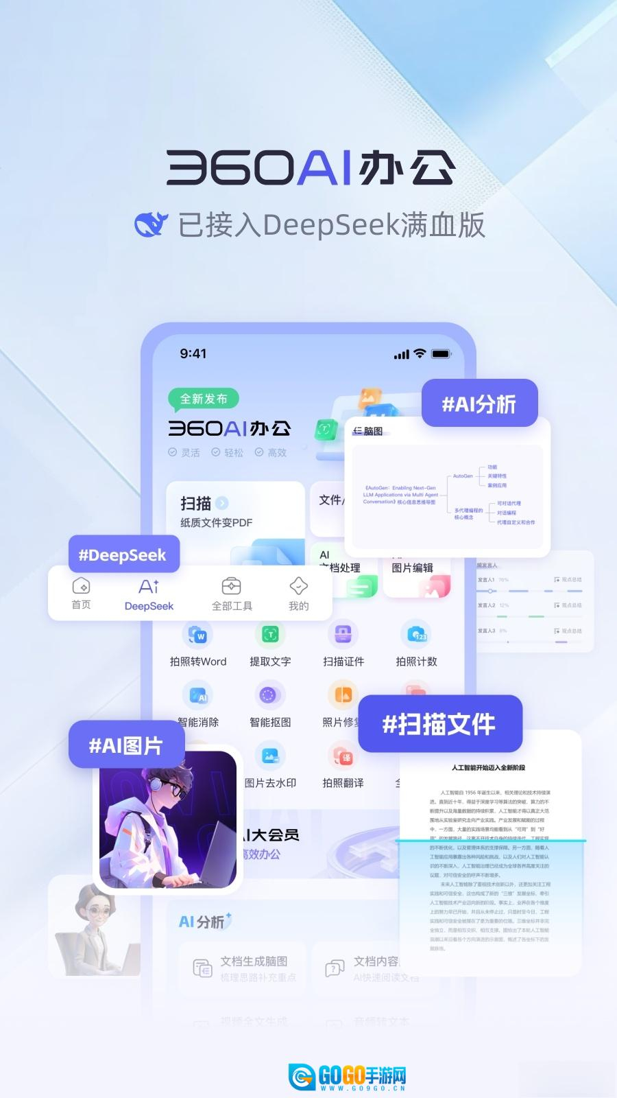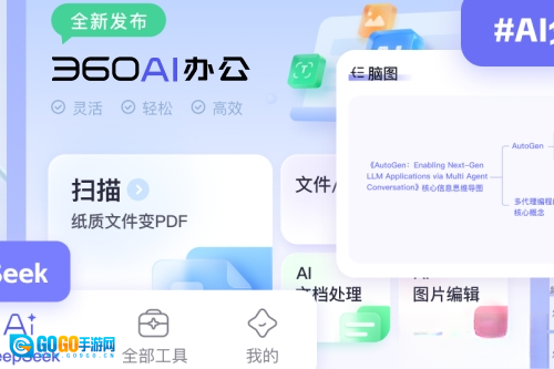 《360AI办公》是一款手机端全能办公助手,集成扫描、图片/视频处理、AI创作、翻译、模板库等功能,覆盖办公全场景。依托AI技术,助力高效处理文档、激发创意、突破语言障碍,让移动办公更智能、更轻松。