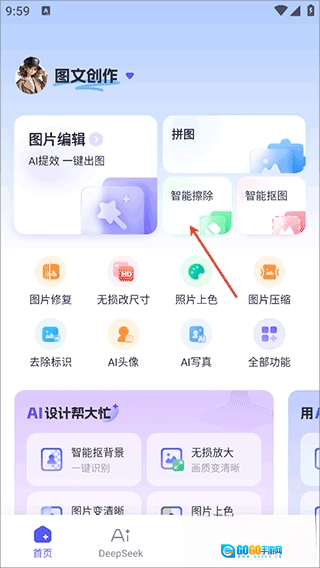 1、进入首页处点击【智能擦除】