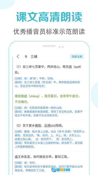 2、古诗文全解:涵盖原文、注释、译文、赏析及朗读音频,帮助突破文言文与古诗词学习中的难点。
