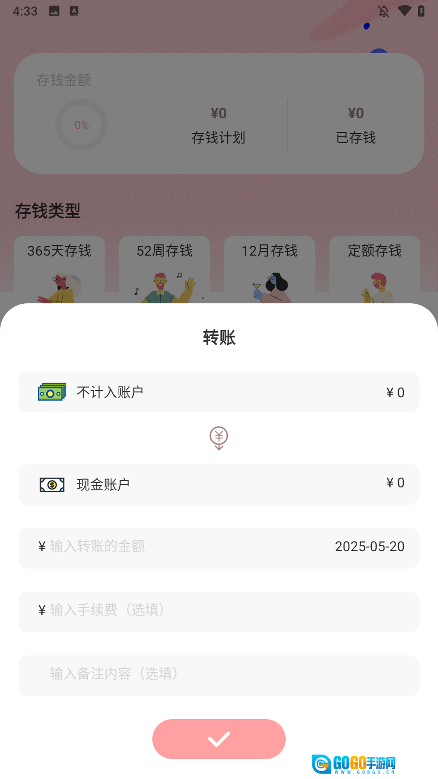 2、能够依据存钱需求来挑选存钱模式,系统会自动生成每日需要存入的金额,收支类目可以自由定义,记账过程既轻松又高效。