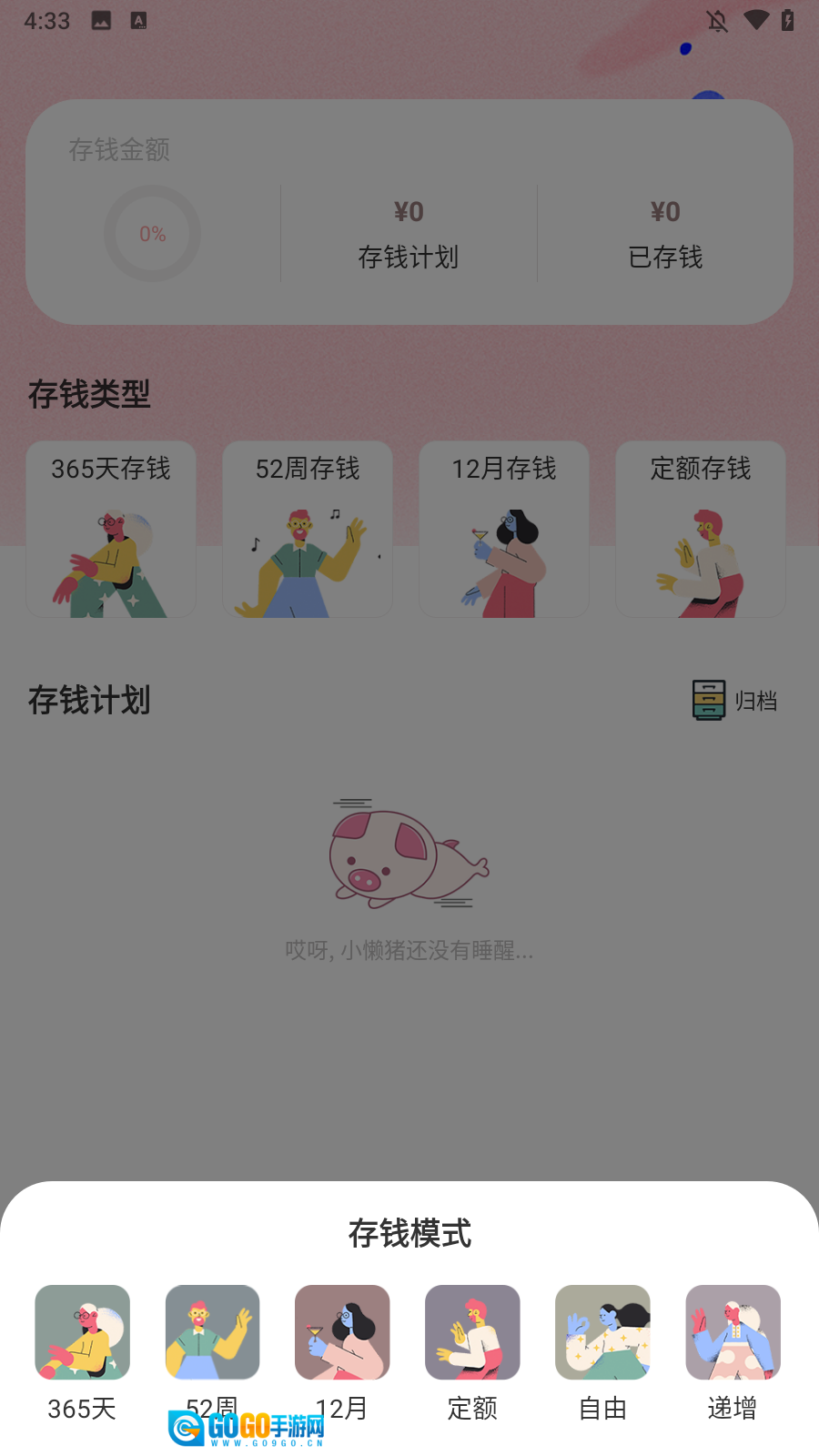 4、点击存钱按钮,这里提供六种不同的存钱方式可供选择,挑选一种自己偏好的即可。