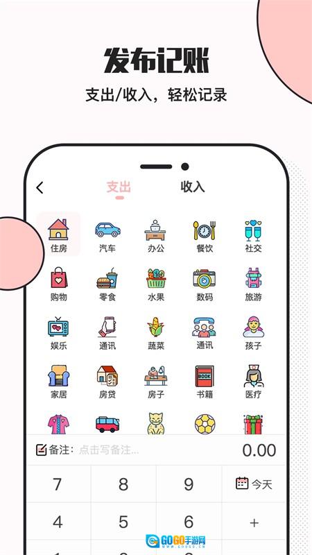 4、将各类消费进行细致分类,便于查看每笔消费的具体情况,还能设置密码,保证只有自己能查看这些记录。