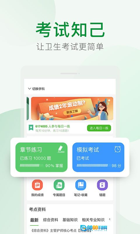 考试知己是一款在线学习与题库训练软件,想考建筑工程、医学卫生、财会金融这些热门领域的证书,用这个考试知己就行。里面能按章节做题,每天还有专属练习题,能模拟真实考试场景,多种方式帮你复习。想巩固知识点、找出没掌握好的地方都能用得上,复习效率能提不少,考上的机会也更大,备考时用它当帮手特别实用。