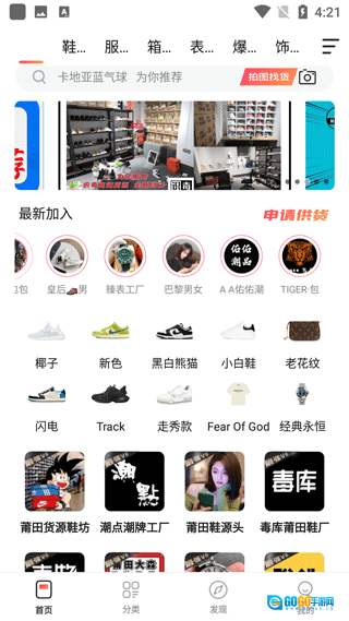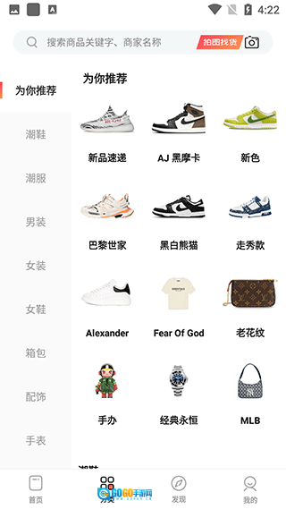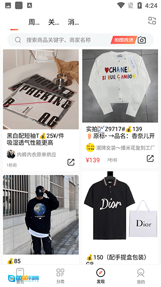 3、点击“发现”,在这里能浏览到最新上架的衣物,还可以通过拍图来查找商品。