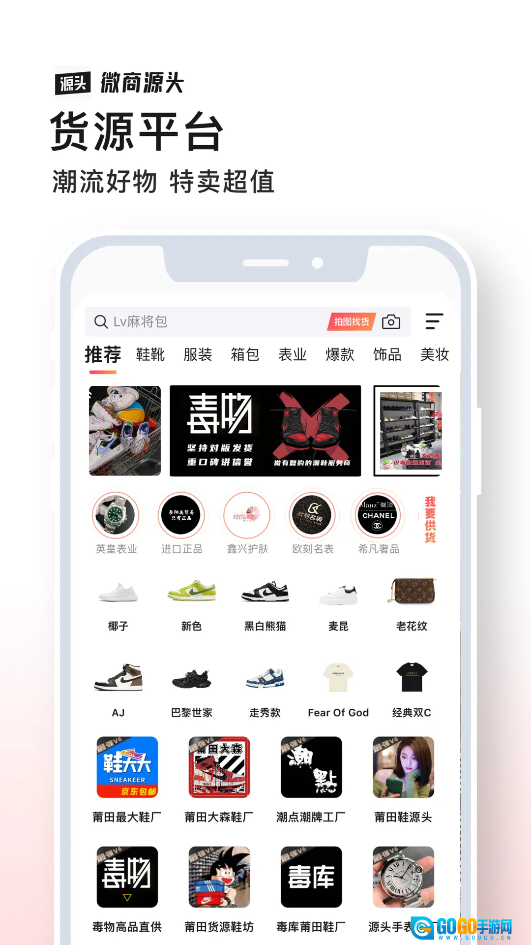 微商源头是一款面向微商、电商、代购等社交电商从业者打造的专业采购平台。不管是个人创业者还是商家,都能通过这款软件获取所需商品。平台上的商品品类十分丰富,涵盖热门潮流品牌与合作服装,使用起来十分便捷。丰富的产品供给,也能在一定程度上保障商品质量,让用户采购时更安心。另外,平台还设有分类导航页面和拍照找货功能入口,帮助用户快速定位心仪的货源与产品。