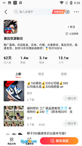 2、点击进入页面后,主动联系商家,添加其联系方式以便后续拿货。