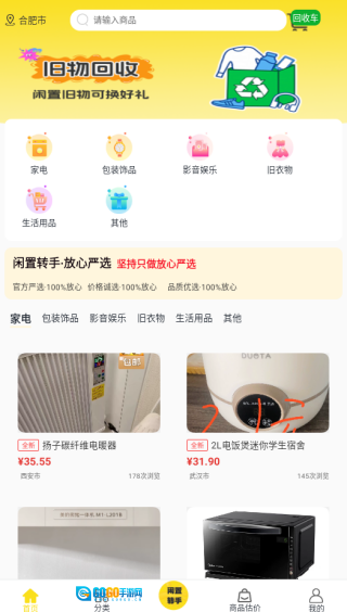 1、首页展示最新上架的商品,其位置、价格信息清晰直观,便于用户快速评估物品的价值。