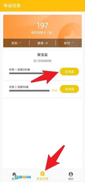 3、在幸运任务页面能够查看每日任务的进度情况,只要完成答题数量相关任务,就可以领取到更多的奖励。