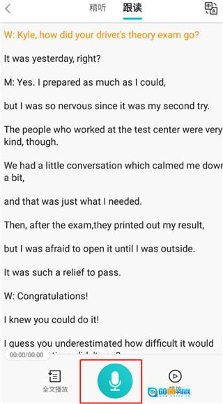 4、若要使用跟读功能,用户只需点击录音键,然后跟着朗读就行。
