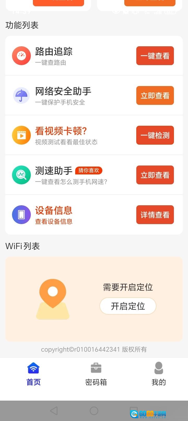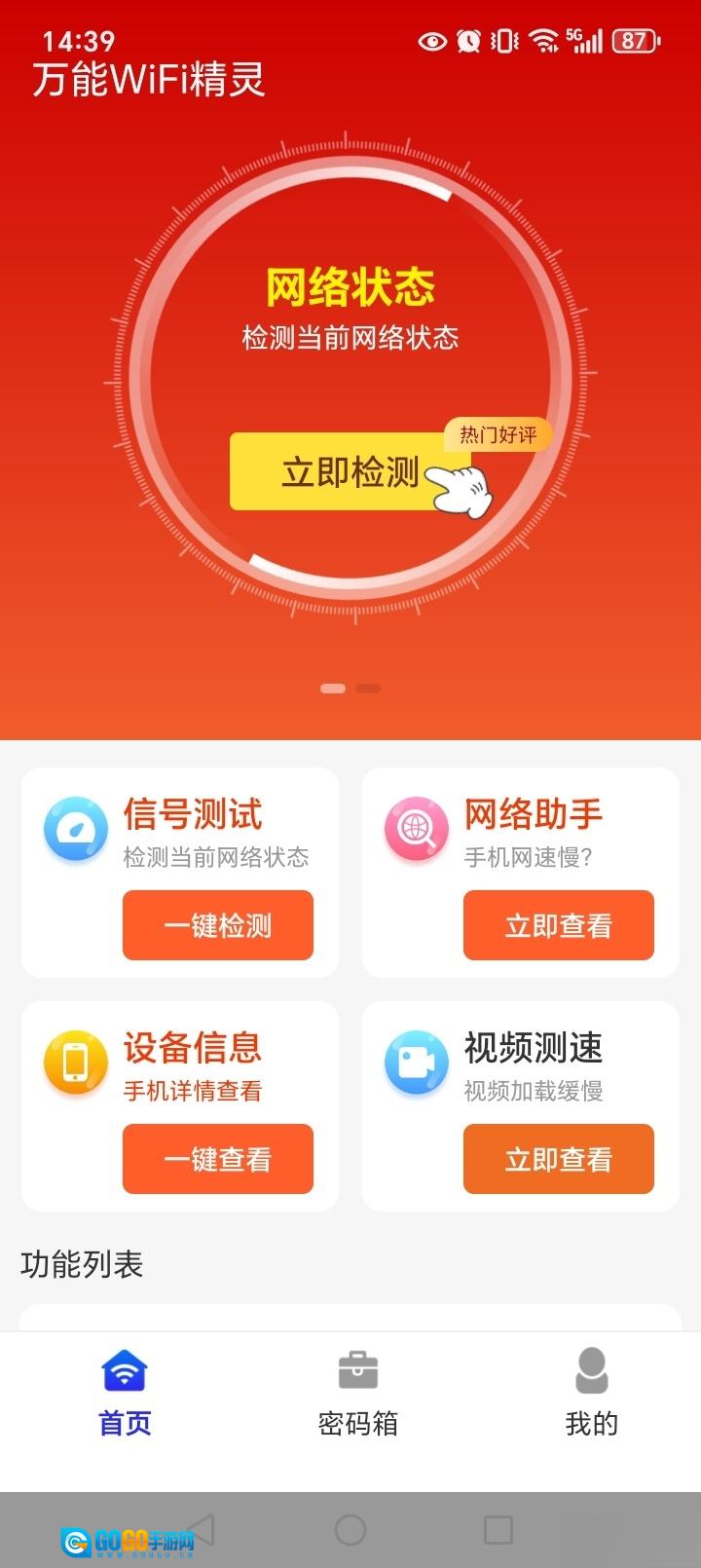 《万能WiFi精灵》是深圳市玖镜软件开发有限公司推出的一款手机WiFi管理软件,使用本款软件可以管理自己的wifi网络,可以检测网络安全情况,可以扫描连接的设备,清理不是自己的设备,防止蹭网,还可以对网络进行优化,提高网络速度,流畅的上网。