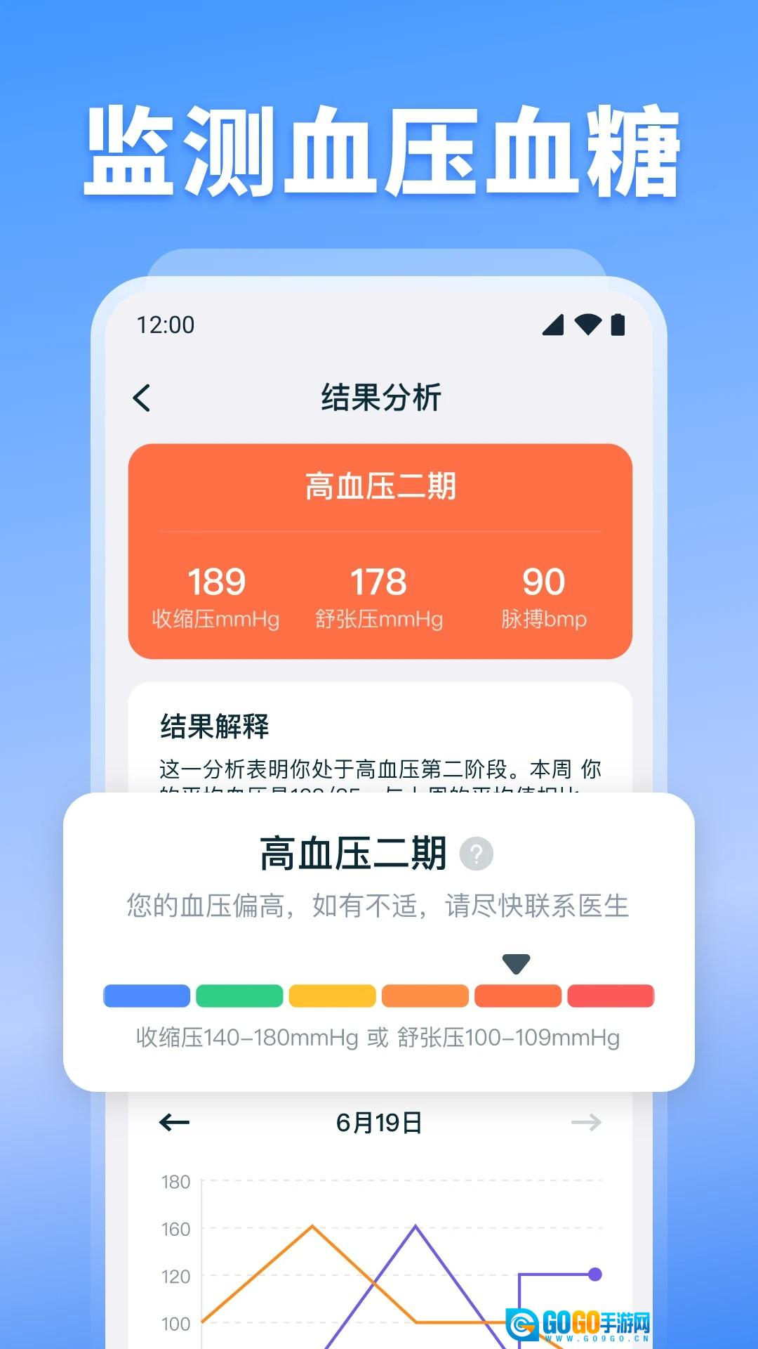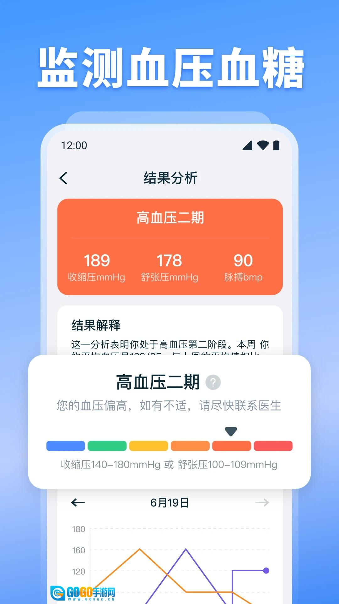 血压血糖检测是一款可以查询健康数据的软件,拥有实时血压血糖监控工具,可以帮助用户在线浏览查看最新的血压,血糖数据,还具有个性化的健康检测机制,随时随地自由了解各种健康状况,轻松关爱健康生活,能完全满足所有使用需求,还具有全新的界面设计,无需任何经验即可上手使用,轻松查看详细的健康报告,给用户带来全面的服务,还具有在线同步功能,可以及时同步用户的身体情况,有需求的用户欢迎软件。