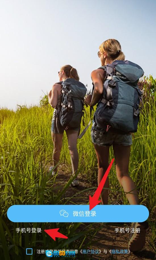 1、登录界面支持手机号或微信快速登录,注册即表示同意相关协议条款。