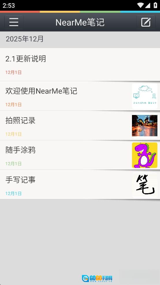 《NearMe笔记》是一款界面简约的手机记事本软件,非常存粹的记录功能,没有广告,没有其他多余的功能,随时拿出手机进行记录,有着多种画笔可以选择,可以自由的选择颜色,软件还支持上传图片或者直接拍照来进行记录。