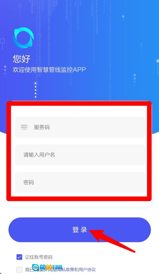1.首次使用请填写服务码、用户名与密码后点击登录按钮完成系统验证并进入主页面。