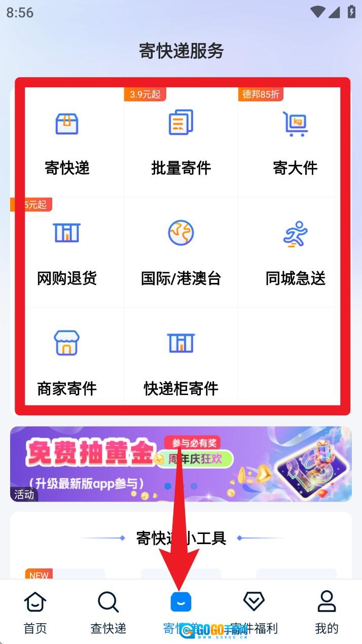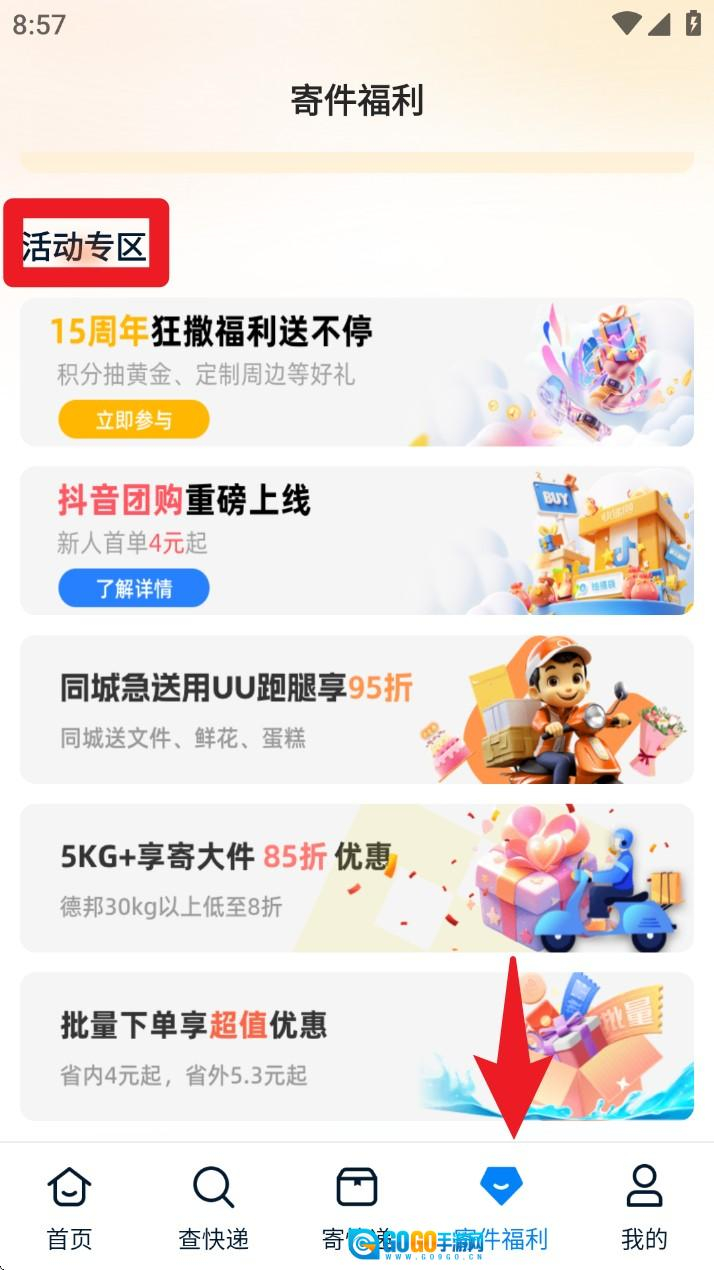 4.进入寄件福利页可参与活动专区,享受运费折扣、优惠券发放及专属寄件补贴,寄得多省得多。