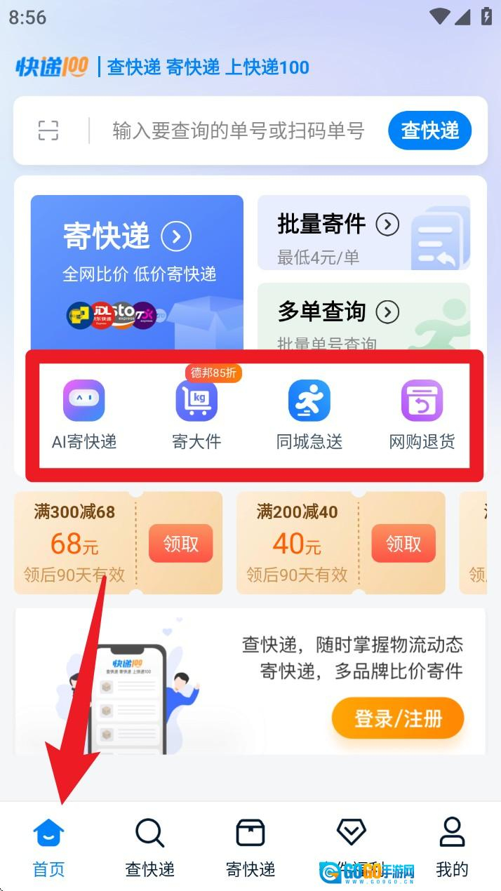 1.进入首页后点击寄快递,可选择AI寄件、寄大件、同城急送等服务,满足不同场景寄件需求,操作便捷直观。