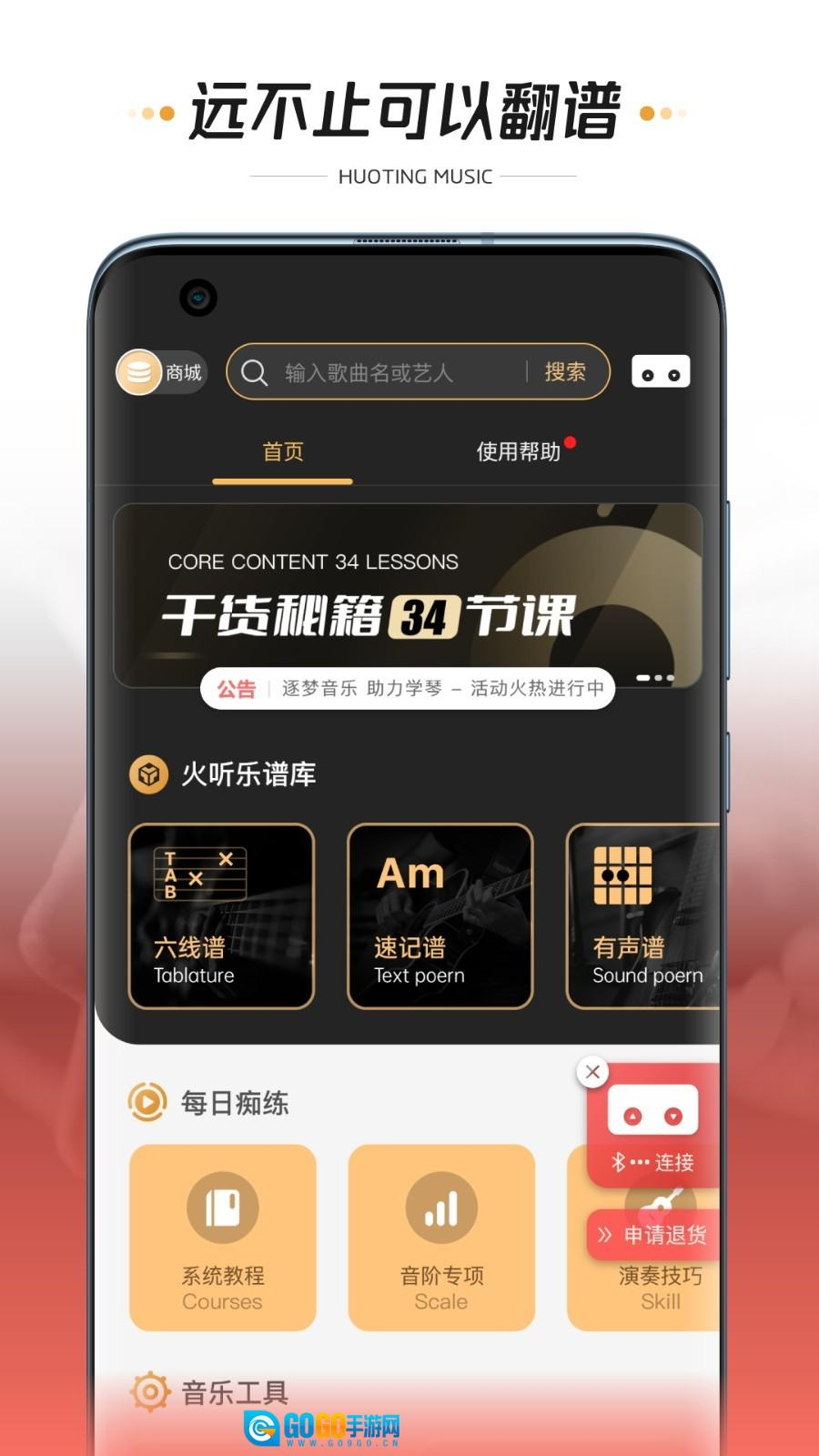 6、曲谱发声:具备曲谱音效播放功能,辅助初学者进行弹唱练习。