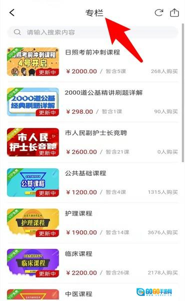 3.进入专栏页面可浏览各类课程内容,涵盖医护、公职、中医等考试方向。