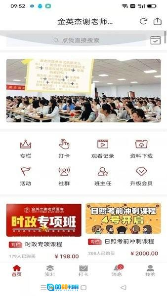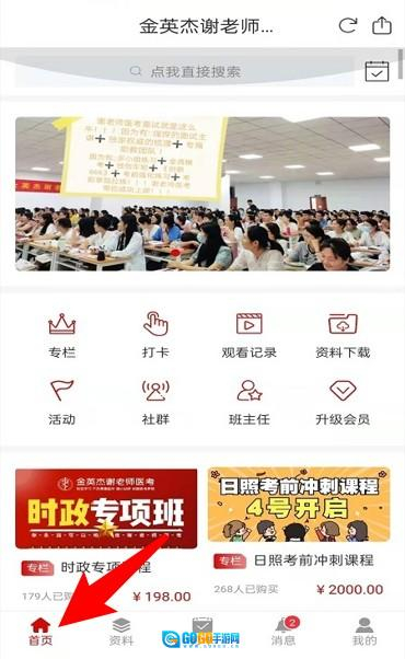 2.首页展示课程、打卡、、社群等入口,丰富学习资源一目了然。