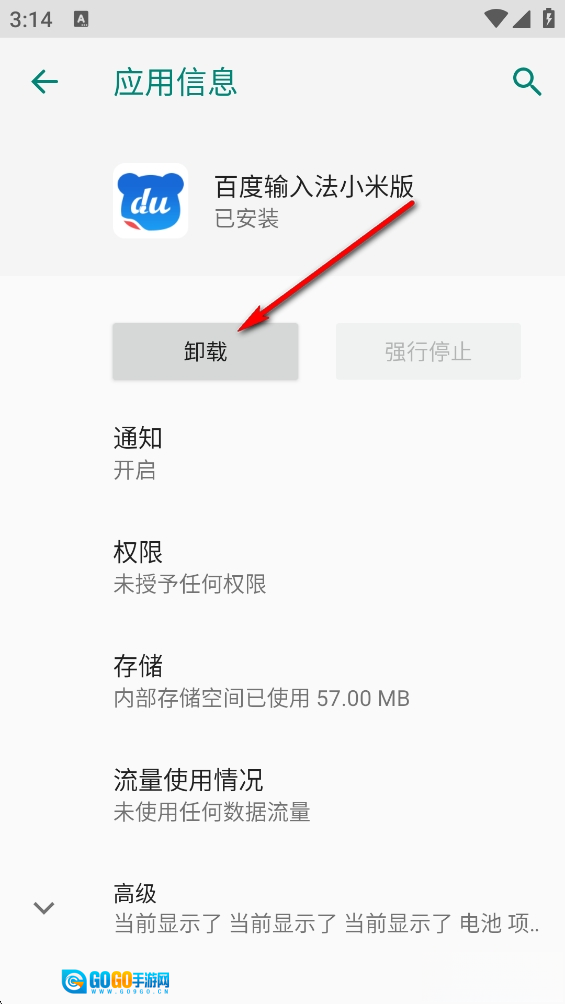 点击【确定】即可卸载百度输入法小米版