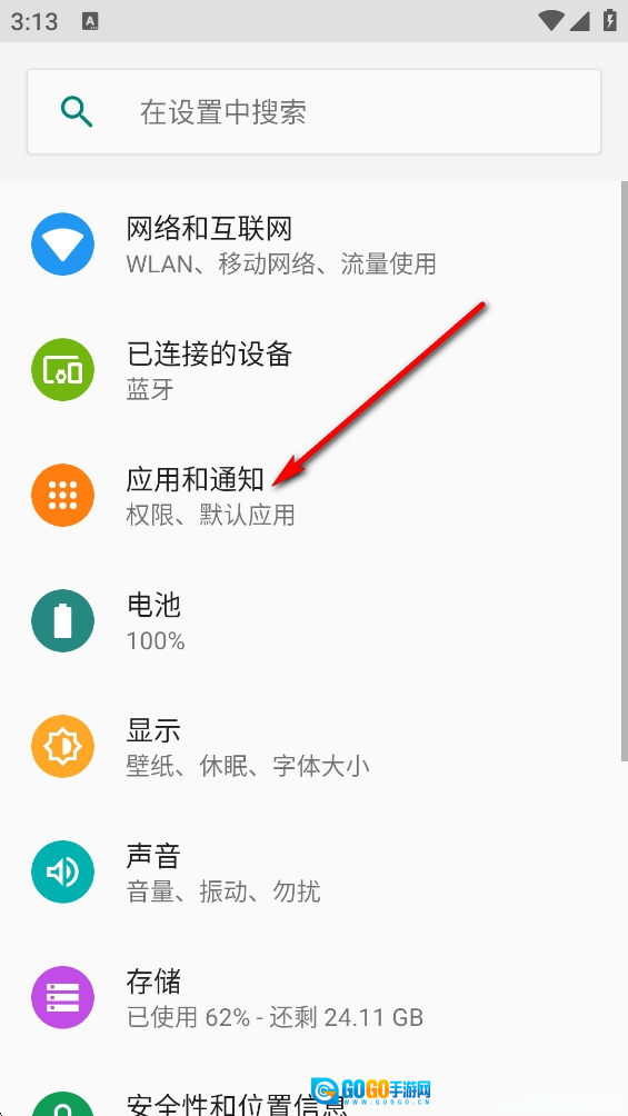 进入手机设置后点击【应用】