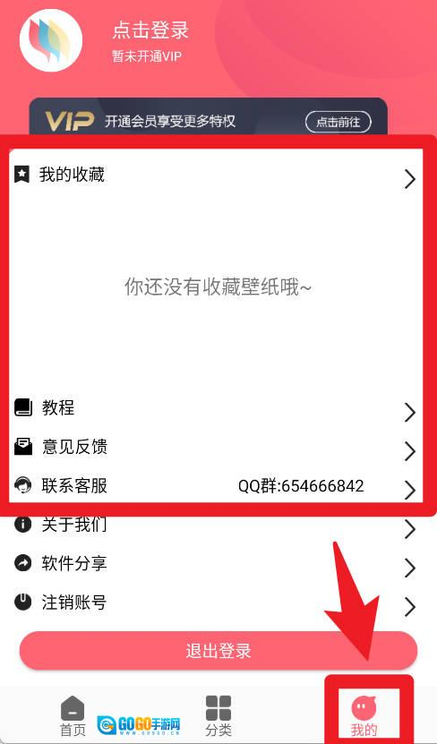 5、我的页面呈现用户收藏的壁纸,同时配备教程、意见反馈、联系客服以及账号管理等功能,便于用户开展个性化设置与管理操作。