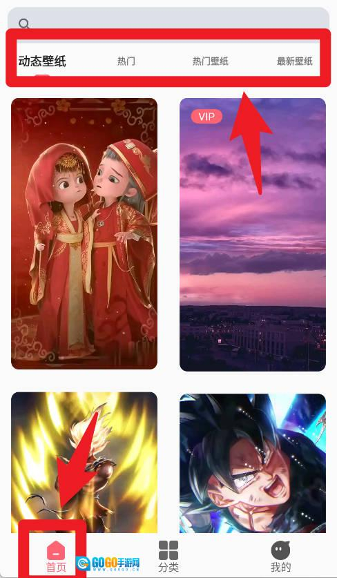 2、首页设有动态壁纸、热门壁纸与最新壁纸分类板块,用户能通过切换不同标签,轻松浏览并挑选心仪的高清壁纸,整个操作流程简洁直观,十分便捷。